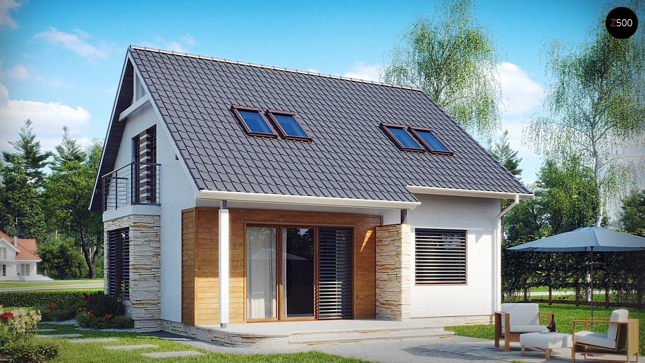 Funkcionalna hiša, enostavna za gradnjo, z bivalno mansardo, tudi za manjše parcele
