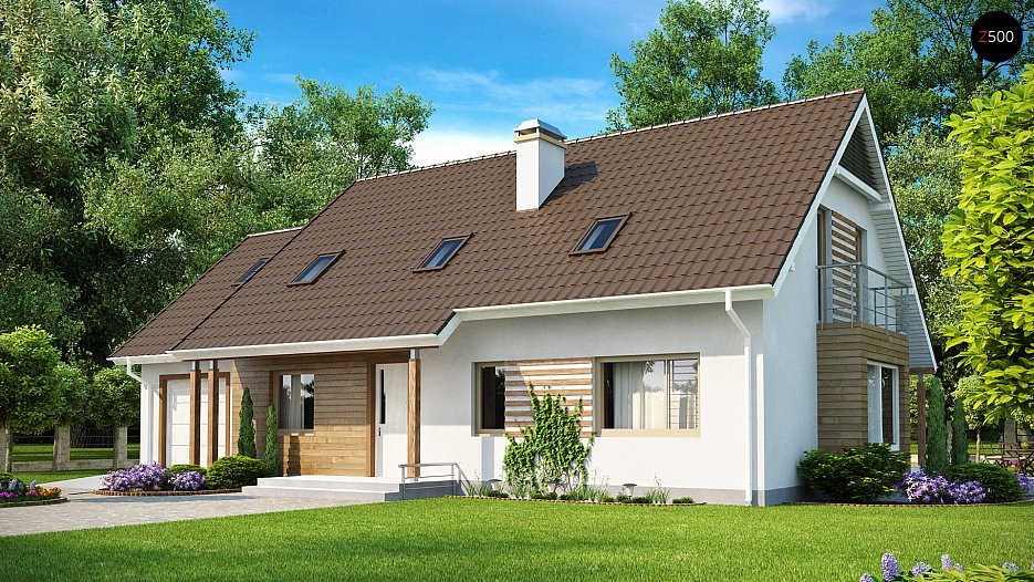 Z103 Načrt lepe, komfortne hiše z mansardo in lepo ter prostorno dnevno sobo
