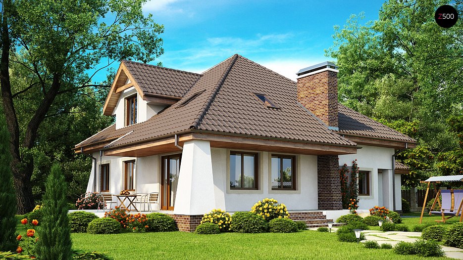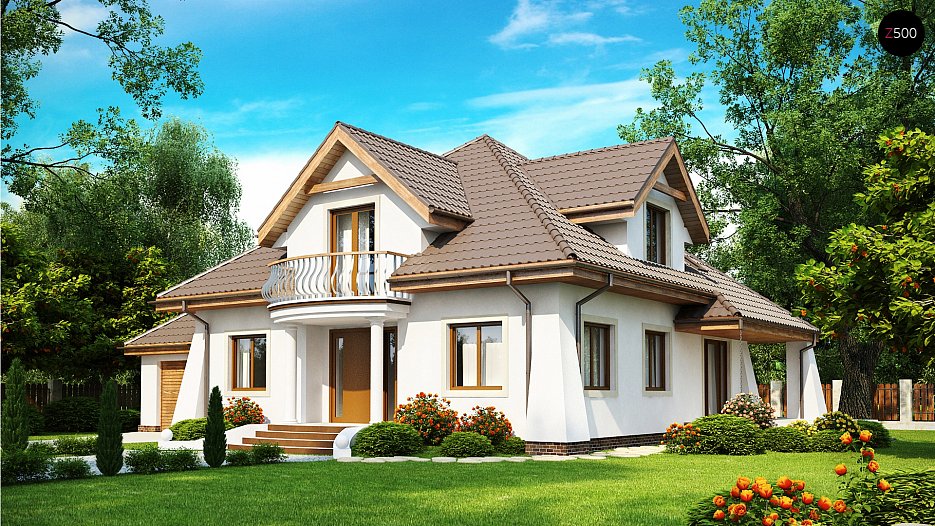 Mansardna hiša v tradicionalnem stilu, z zanimivimi frčadami in balkonom