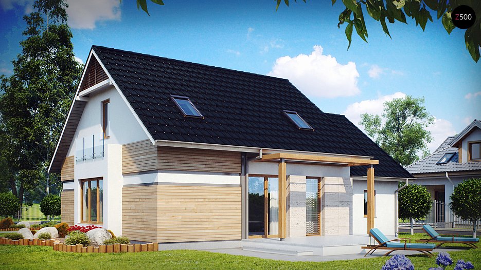 Tipski projekt lepe in udobne hiše z lepo bivalno mansardo, garažo in erkerjem