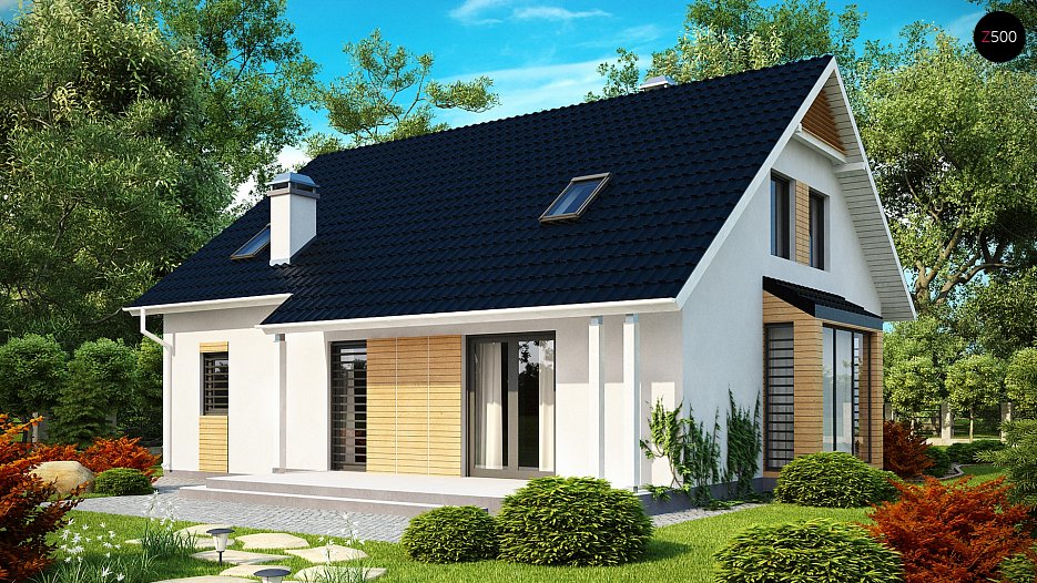 Z124 Načrt kompaktne hiše z garažo in eksterjerjem, cenovno ugodna za gradnjo in življenje v njej.