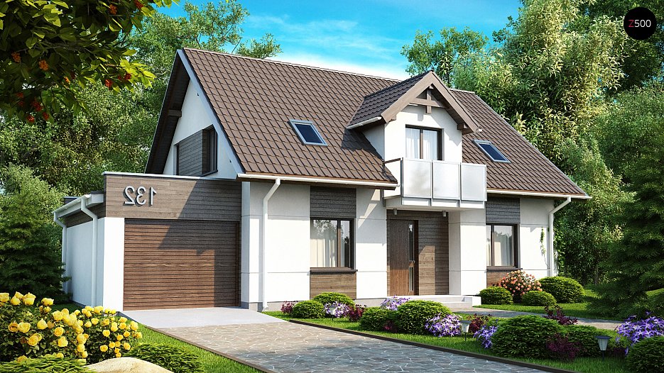 Z132 Optimalni projekt hiše, z večjim dnevnim prostorom, kuhinjo, mansardo in kurilnico