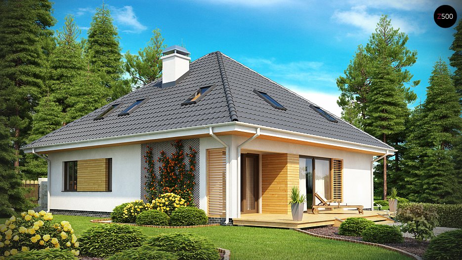 Največja prednost zasnove Z143 je prostor v dnevni sobi, ki je subtilno razdeljen na dva dela. Prvi ustvarja prostor za sestanke in pogostitev za mizo. Drugi je idealen za počitek in sprostitev. Rahlo zakrita kuhinja ima svojo priročno shrambo. V pritličju boste našli tudi udobno sobo za goste z veliko omaro in praktično kopalnico. V prvem nadstropju so tri prostorne spalnice. Največji in najbolj ekskluzivni od njih ima svojo garderobo, kopalnico in ločen balkon. Udobno opremljena kopalnica ima ločen prostor za perilo. Skylight kot možnost. Stavbna konstrukcija je zasnovana tako, da je brez težav mogoče enostavno in enostavno narediti stekleno streho v slemenu.