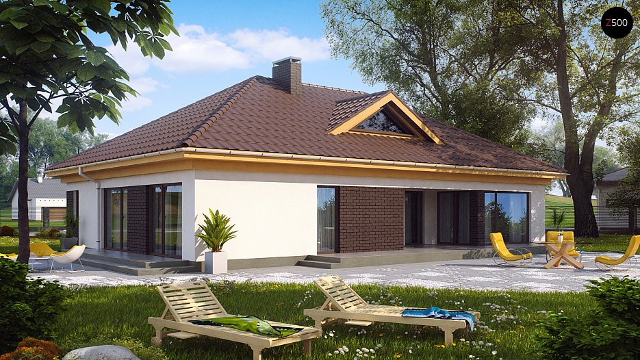 Z144 Tipski projekt pritlične, lepe, moderne hiše, z nadkrito teraso in garažo za dva avtomobila