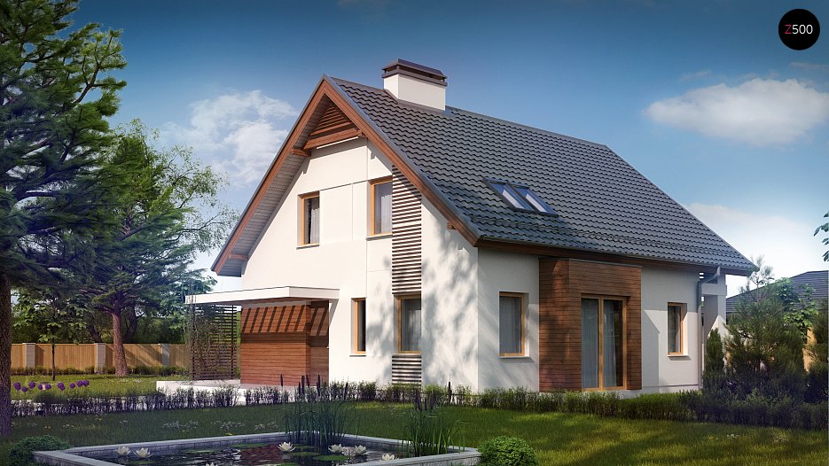 Z166 Načrt lepe mansardne hiše, za erkerjem in štirimi prostornimi in udobnimi sobami