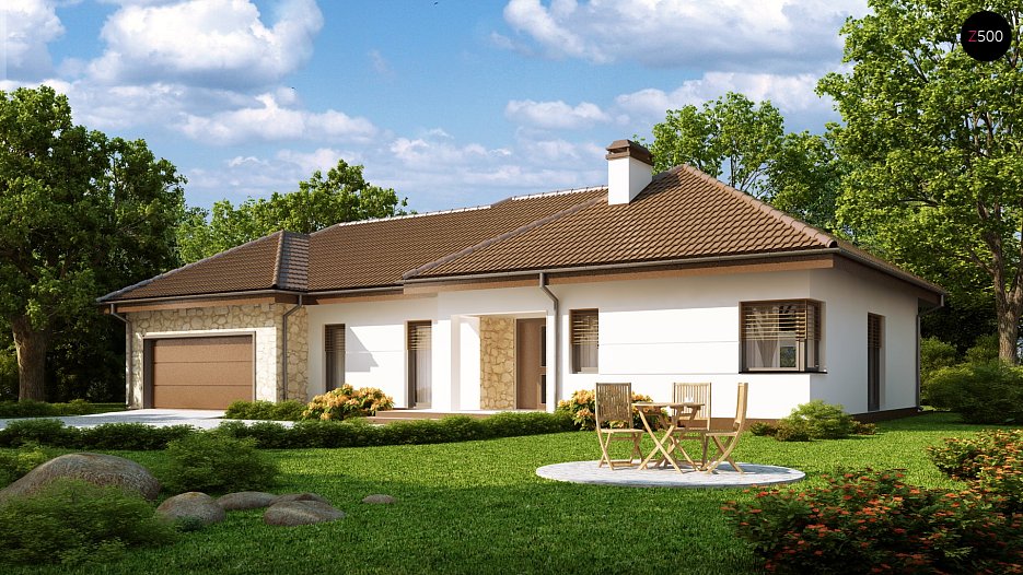 Sestavljen v zeleni barvi velike parcele bo postal udobna primestna rezidenca, na zadnji strani hiše je zasnovana velika terasa, delno pokrita s streho, s katere je enostavno iti na vrt. Notranjost hiše je svetla in prostorna, ureditev prostorov pa omogoča prosto ureditev prostora.