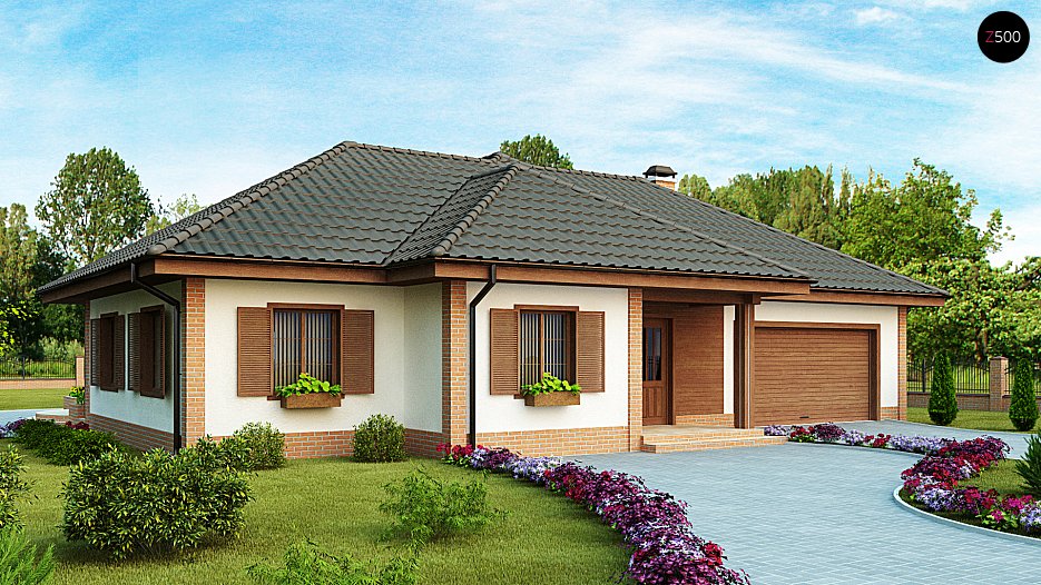 Projekt Z17 je projekt pritličnih hiš z dvojno garažo. Vhod v hišo je izveden čez nadstrešenega vhodnega platoja, kar nam zagotavlja zaščito pred neugodnimi Vremenskimi vplivi. Koloristika fasade, polkna, leseni detajli na fasadi dajo hišo domače za predhodno vedeti, je treba pač brez vsega našteti podrobnosti spremeniti v uporabnike Druge rešitve, kar je spremenilo zunanji videz hiš.