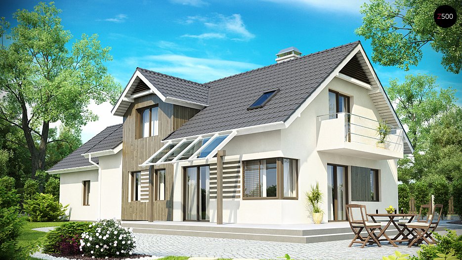 Z175 to wyjątkowy projekt o prostej konstrukcji z dwuspadowym dachem, co czyni go tanim i łatwym w budowie. Zgrabne lukarny na piętrze praktycznie powiększają pokoje oraz zdobią dom.