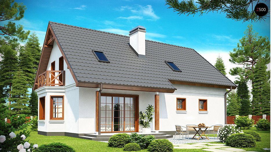 Z178 to zgrabny i funkcjonalny piętrowy dom z bocznym jednostanowiskowym garażem. Zwarta, prosta bryła oraz dwuspadowy dach czynią go rozsądną, tanią w realizacji inwestycją. Eleganckie wykończenie elewacji, klasyczne dodatki oraz stolarka okienna z naturalnego drewna nadają mu wyjątkowego stylu.