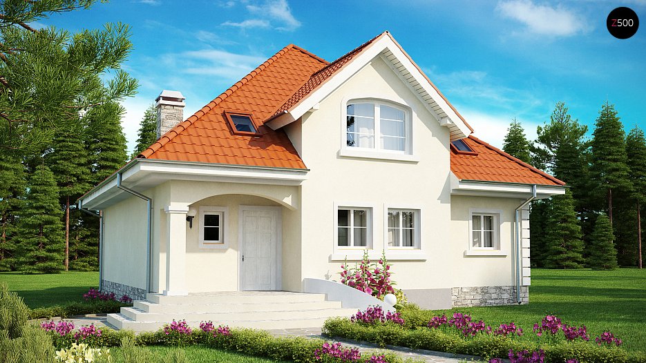 z enojno garažo z leve strani, prostori nad garažo in prednjim balkonom