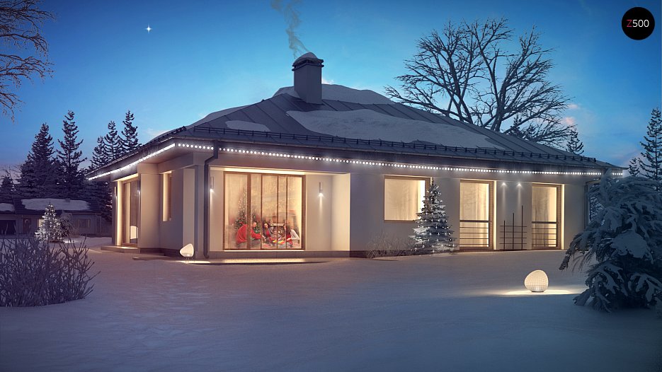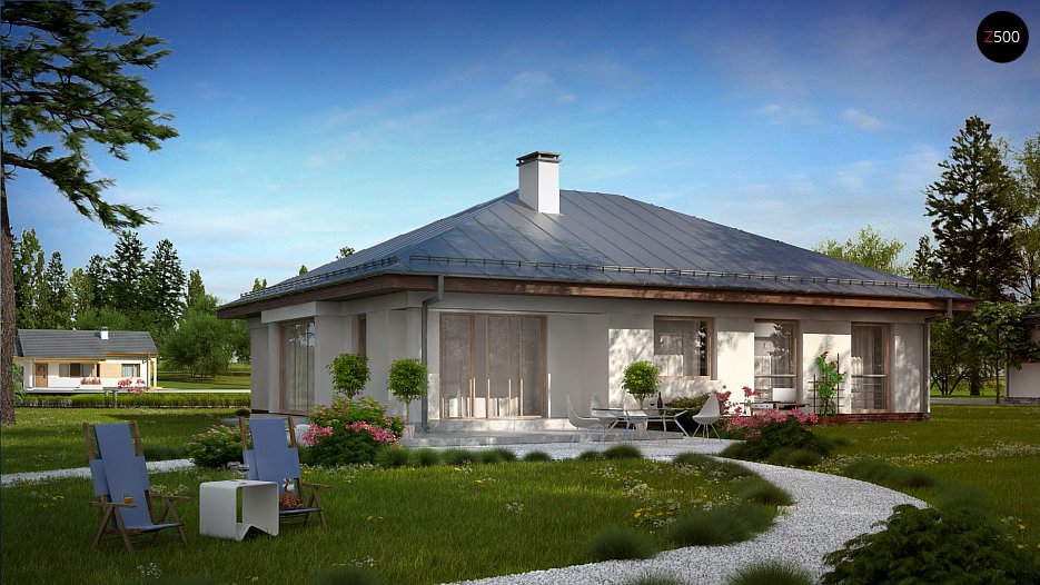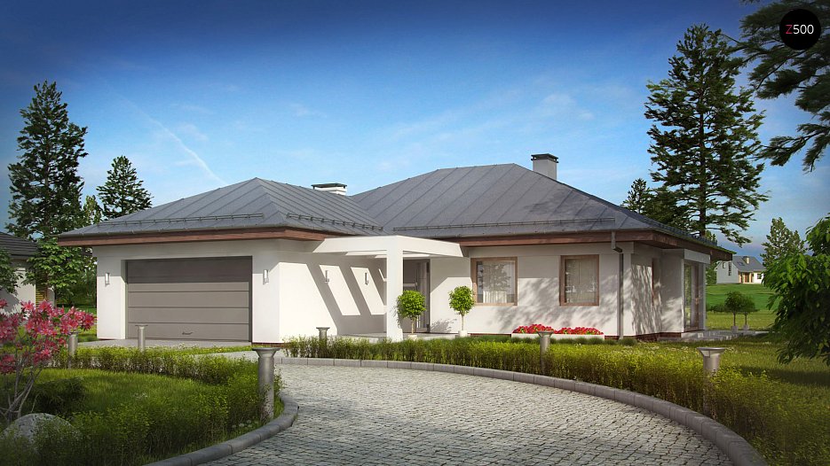Z207 je enonadstropna hiša s sprednjim vhodom v garažo. Sodobne in značilne, umirjene barve fasade naredijo hišo elegantno in prijetno.