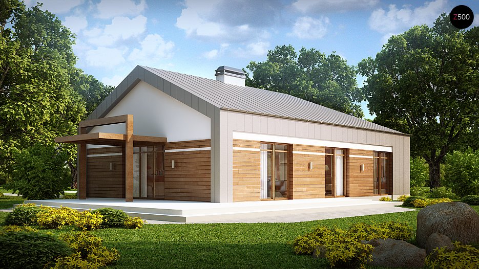 Z208 je idealen predlog za ljudi, ki imajo radi inovativne rešitve. Zgrajen v zeleni bar velike ali manjše parcele bo postal udobno primestno bivališče za štiričlansko družino.