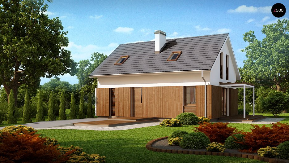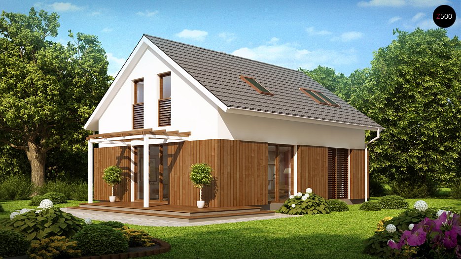 Projekt manjše mansardne hiše, tradicionalne oblike in z dvokapno streho