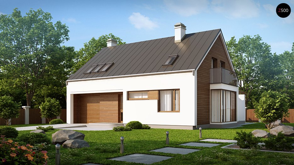 Osrednji del je prostorna, svetla dnevna soba v kombinaciji z jedilnico in oknom, ki popestri notranjost in ustvari ločen prostor. Kuhinja, zasnovana v odprti sestavi, odlično poveča celotno sobo. Post s prostorom za kamin daje notranjosti prijeten in topel značaj. V prvem nadstropju so tri prostorne spalnice in dve veliki garderobi. Na voljo je tudi udobna kopalnica s prostorom za veliko kad. Z237 je idealen predlog za vse, ki iščejo dom s prefinjeno obliko in funkcionalnimi rešitvami. Sodobni elementi fasade in zanimiva barva ustvarjajo skladno, harmonično celoto. Če je tako videti vaš sanjski dom, danes naročite ta projekt!