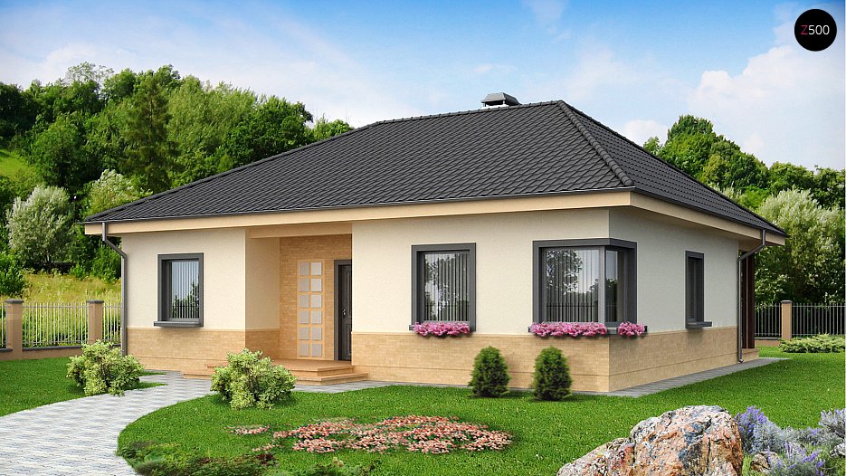 Projekt lepe, funkcionalne, pritlične hiše s štirikapno streho, primerne za 4-člansko družino