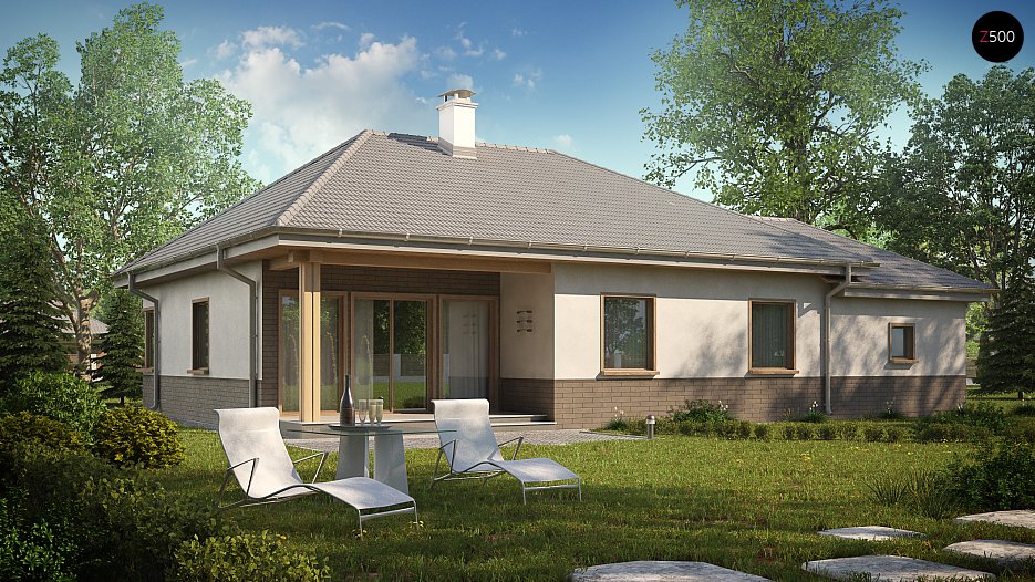 z garažo na levi strani in oknom v kopalnici