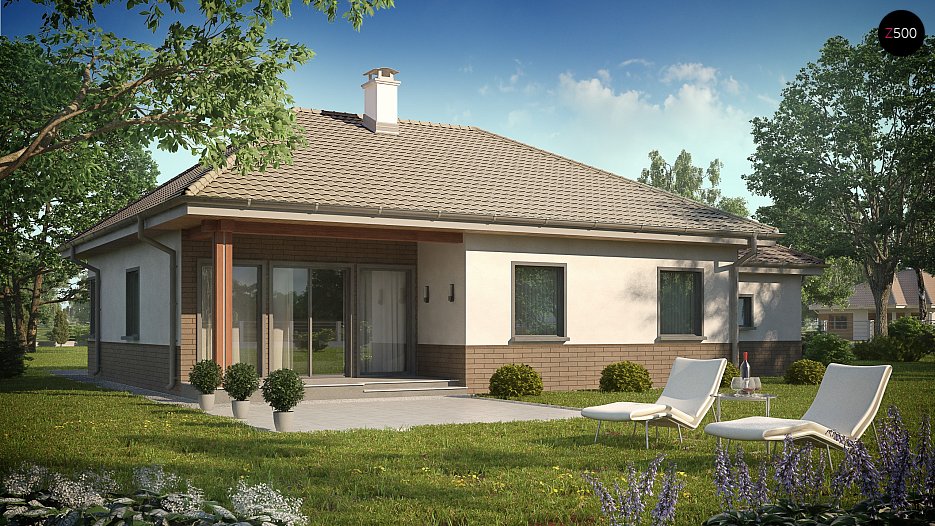 Projekt lepe, funkcionalne, pritlične hiše s štirikapno streho, primerne za 4-člansko družino