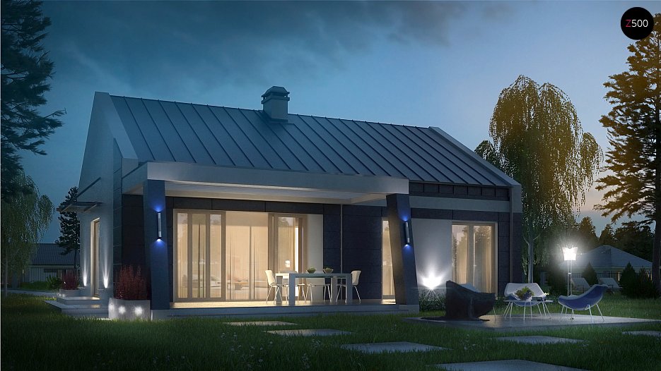 Projekt Z256 to idealna propozycja dla osób poszukujących domu parterowego z bogatym programem funkcjonalnym.