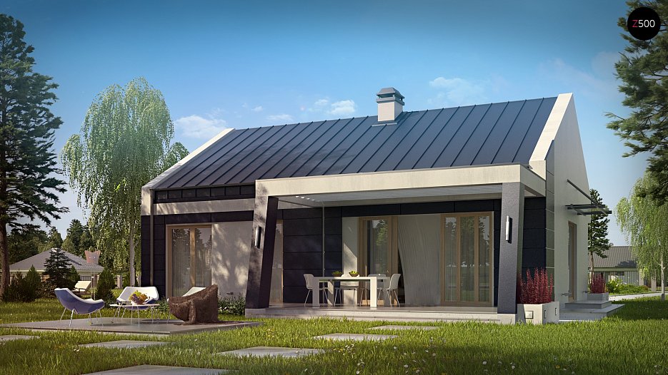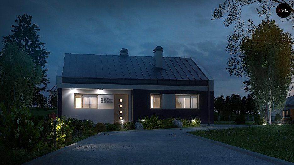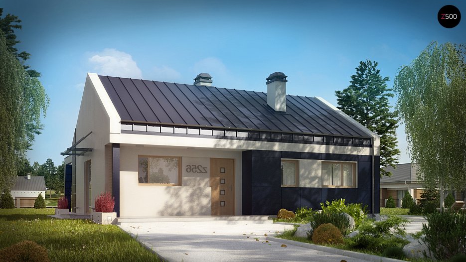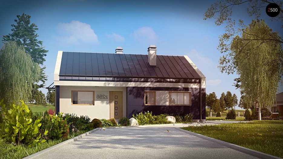 Z256 to projekt domu nowoczesnego. Tworzy go prosta bryła z dwuspoadowym dachem. Oryginalne elementy elewacji i ciekawa kolorystyka nadają mu niezwykłego uroku.