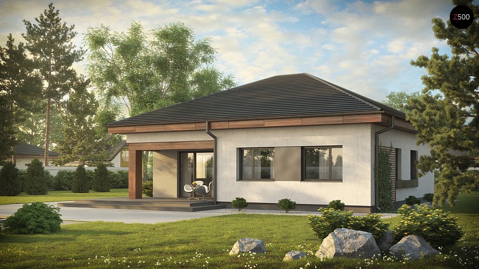 Z273 je projekt kompaktne, a funkcionalne pritlične hiše, s štirikapno streho.