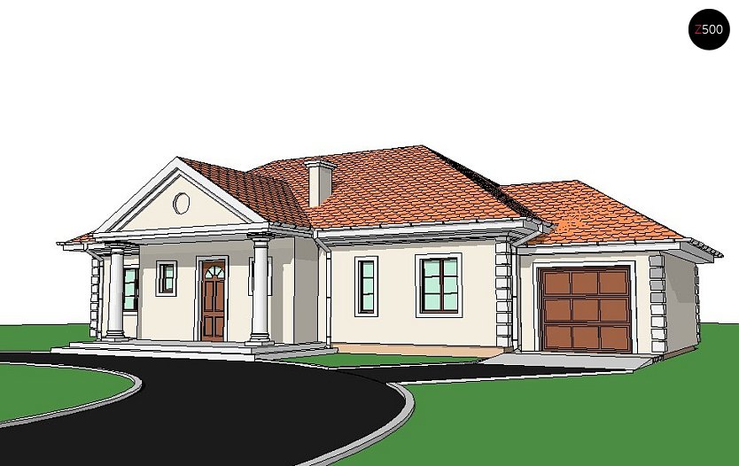 Oblikovanje hiše Z2 GL - je osnovna varianta, v kateri je bila zasnovana garaža na levi (19,7m2).