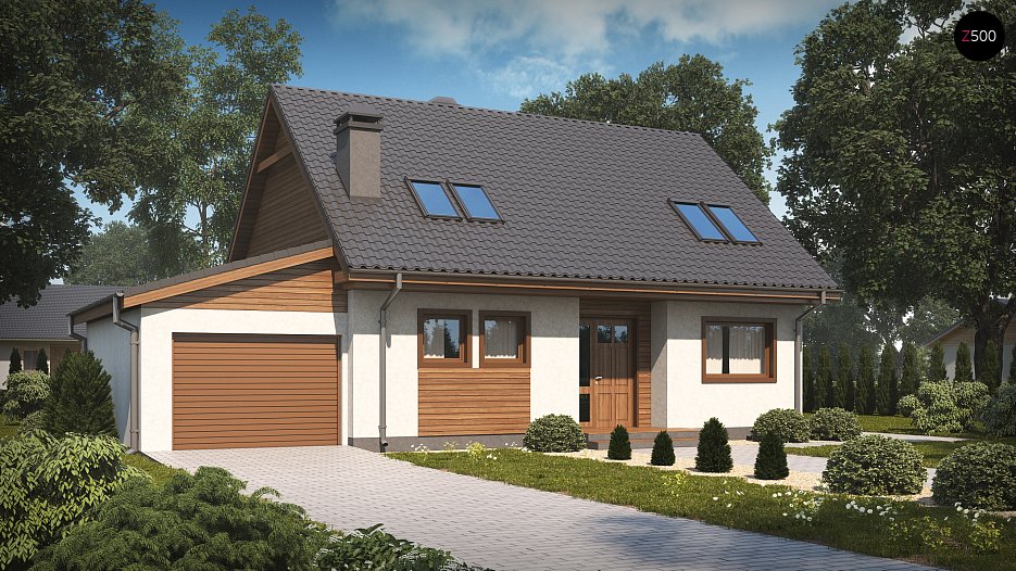 Z40 GPp z garažo z desne strani in enokapno streho nad njo