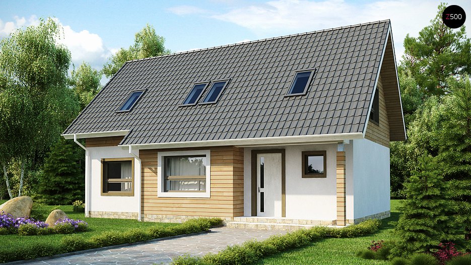 Enostavna, ekonomična hiša z mansardo in funkcionalnim interierom ter dvokapno streho