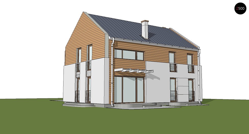 Projekt energetsko varčne hiše z večjo dnevno sobo in originalnim dizajnom fasade