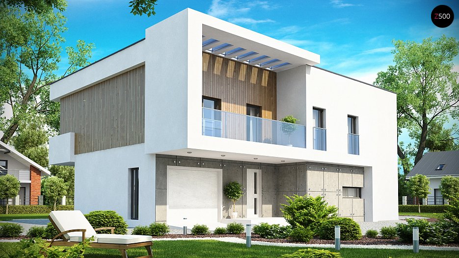 Zx39 Funkcionalna nadstropna hiša moderne arhitekture, z ravno streho in lepo garažo