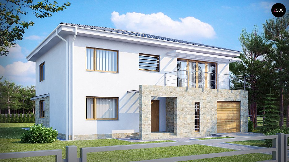 Projekt ZX4 to propozycja dla osób ceniących sobie nowoczesne wzorce. Prosta, foremna bryła budynku wzbogacona została elementami kamienia, stali i ciepłego drewna.