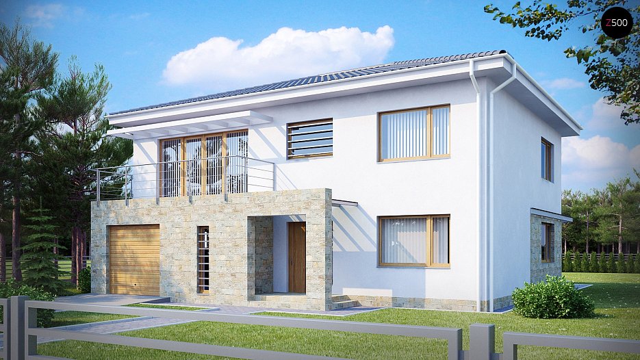 Projekt ZX4 to propozycja dla osób ceniących sobie nowoczesne wzorce. Prosta, foremna bryła budynku wzbogacona została elementami kamienia, stali i ciepłego drewna.