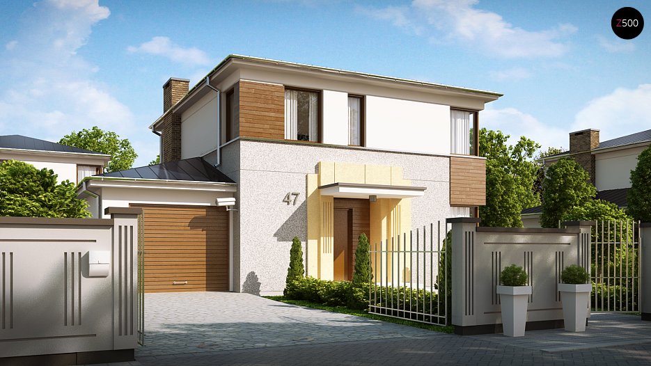 Zx47 je zasnova hiše s preprostim blokom in strukturo, ki se nanaša na klasične modernistične vzorce. Odlično za urbane parcele. Končne podrobnosti dodajo sodoben pridih v hišo.
