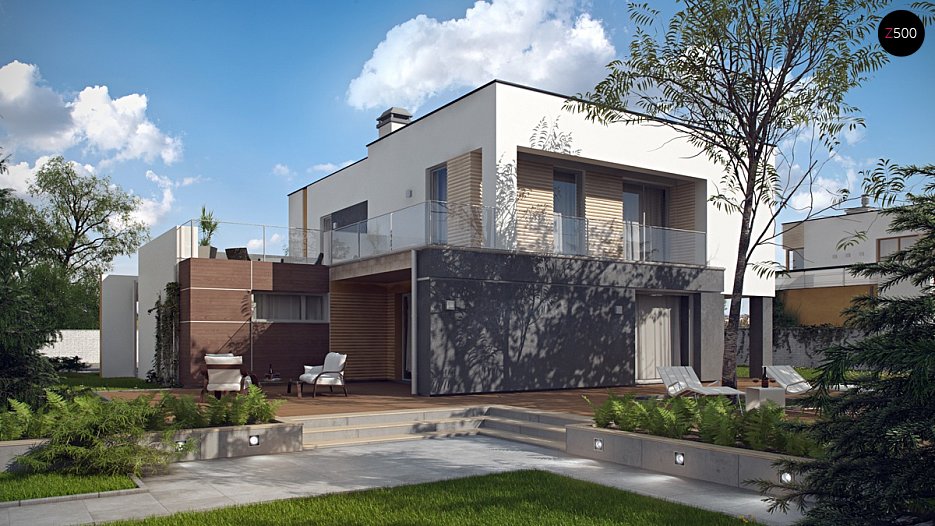 Zx64 Luksuzna hiša v modernem stilu, z ločenim lokalom v prednjem delu hiše.