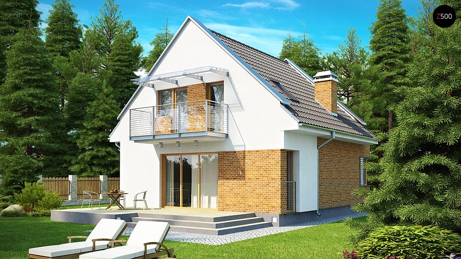 Tipski načrt manjše, lepe hiše z bivalno mansardo v modernem stilu