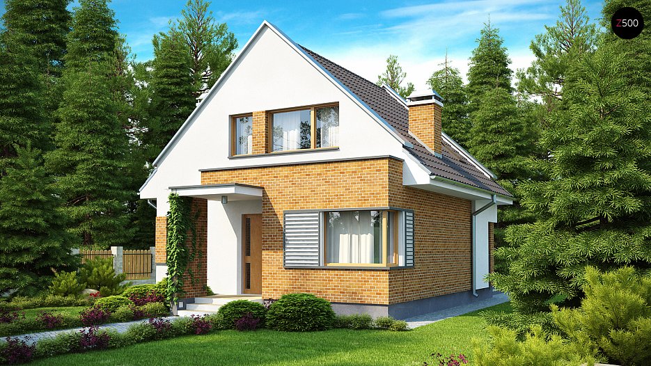 Tipski načrt manjše, lepe hiše z bivalno mansardo v modernem stilu