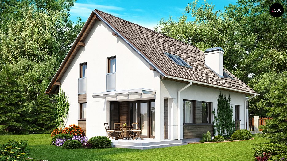 Z132 Optimalni projekt hiše, z večjim dnevnim prostorom, kuhinjo, mansardo in kurilnico