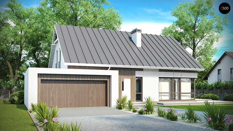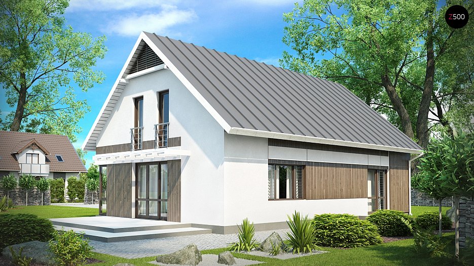 Z142 je privlačen projekt hiše s podstrešjem in udobnimi spalnicami. Spredaj so velike zasteklitve z asimetrično razdelitvijo, vpletene v naslednje razdelke na ometu, dajale vtis urejenosti in določale estetiko fasade. Sestava svetlih barv in lesenih zaključkov ustvarja harmonično celoto. Še več, preprosta zgradba stavbe in podokna streha sta donosna naložba.
