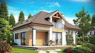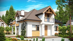 Tradicionalno telo stavbe modernega videza in zanimive funkcije. Iz predsobe gremo v odprto dvorano v dnevno sobo s centralno nameščenimi stopnicami na podstrešje. Levo od vhoda je kuhinja z velikim oknom, povezana z jedilnim prostorom, od koder lahko gremo ven na teraso. Program v pritličju ima tudi udobno kopalnico z dvema umivalnikoma in oknom. Projekt je razdeljen na dve funkcionalni coni, pritlični dnevni pas in podstrešno nočno območje. Na podstrešju so neverjetna prednost lože, v katere se lahko izstopimo iz vsake sobe, odlično urejen prostor za garderobne omare, poleg velike udobne kopalnice, ki je prednost tega dizajna.