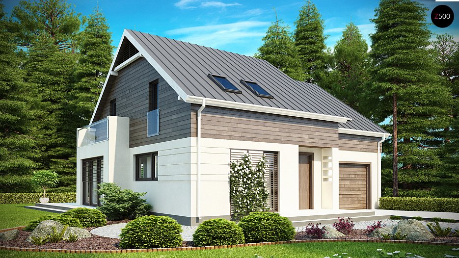Z147 Načrt funkcionalne hiše s povišanim kolenčnim zidom, erkerjem in garažo