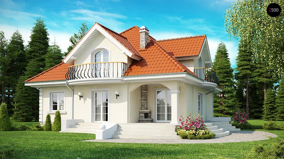 z enojno garažo z leve strani, prostori nad garažo in prednjim balkonom
