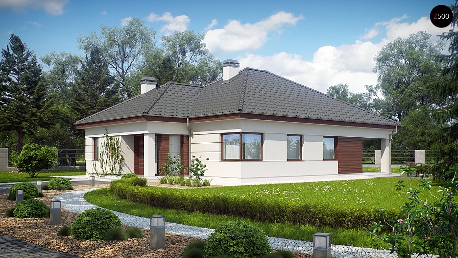 Z195 je udobna enonadstropna hiša s prostornim dnevnim prostorom in štirimi sobami s subtilnim videzom.