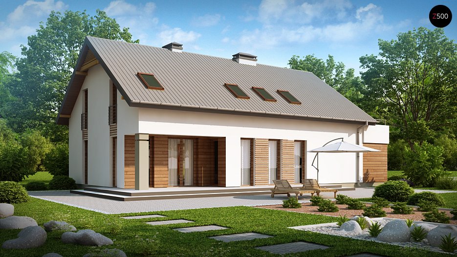 Z198 je izjemno udoben in funkcionalen dizajn. V pritličju je svetlo in prostorno dnevno območje z veliko kuhinjo, priročno shrambo in jedilnico. V skoraj vsaki sobi so balkonska vrata, ki omogočajo odličen stik z okoliškim vrtom in omogočajo dostop na teraso. Na voljo so tudi številni garderobni prostori in shrambe, velika kopalnica s pralnico. V mansardi so tri prostorne spalnice, skupna kopalnica in prostorna garderoba. Območje gostiteljev je ločen azil z udobno spalnico, lastno kopalnico in garderobo ter dodatno delovno sobo. Dve sobi z dvojčkom imata dodaten izhod na udobno teraso nad garažo.
