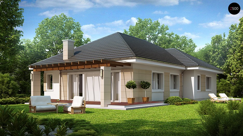 Z201 je udoben dizajn za družino, ki ceni udobje. Velike sobe z razmeroma majhnim komunikacijskim območjem. Sestavljen v zeleni barvi velike parcele, bo postal udobno bivališče za vso družino. Terasni del ima pergolo, oblikovano za senco v vročih dneh. Pergolo lahko napolnite s prozornimi polikarbonatnimi ploščami in nato deluje tudi kot dežna prevleka.