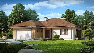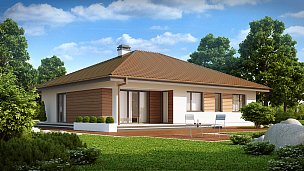 Pritlična hiša, z večjo garažo za dva avta, z vhodne strani in večjo teraso z dvoriščne strani
