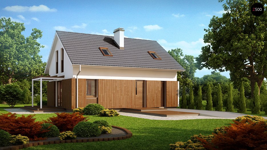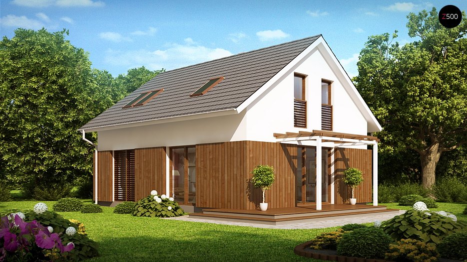 Projekt manjše mansardne hiše, tradicionalne oblike in z dvokapno streho