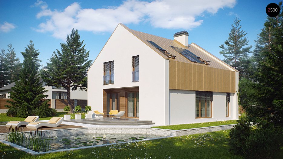 Z218 Načrt energetsko varčne hiše, modernega izgleda, ugodne za gradnjo in življenje v njej