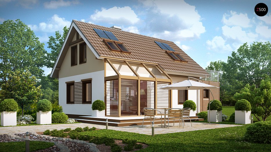 Z220 Manjša hiša z bivalno mansardo v verziji z ali brez zimskega vrta, s teraso nad garažo