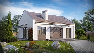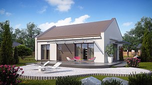 Manjša pritlična hiša,z dvema verzijama ureditve dnevne sobe oz. kuhinje