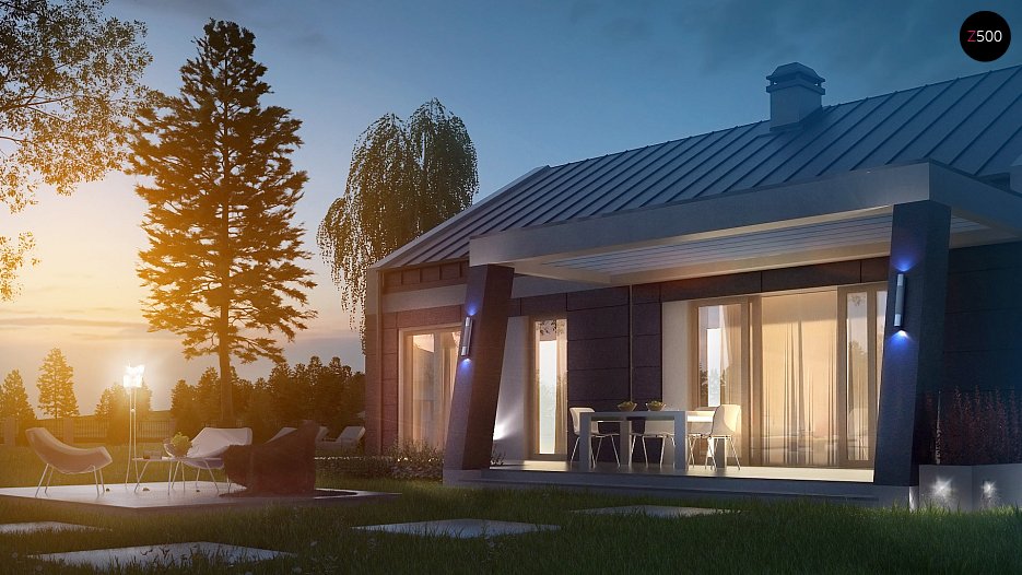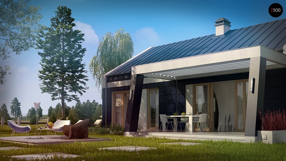 Projekt Z256 to idealna propozycja dla osób poszukujących domu parterowego z bogatym programem funkcjonalnym.