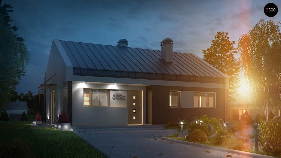 Z256 to projekt domu nowoczesnego. Tworzy go prosta bryła z dwuspoadowym dachem. Oryginalne elementy elewacji i ciekawa kolorystyka nadają mu niezwykłego uroku.